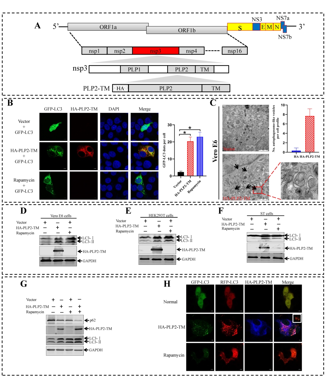 “Autophagy is induced by swine acute diarrhea syndrome coronavirus through the cellular IRE1-JNK-Beclin 1 signaling pathway after an interaction of viral membrane-associated papain-like protease and GRP78”,DOI: 10.1371/journal.ppat.1011201