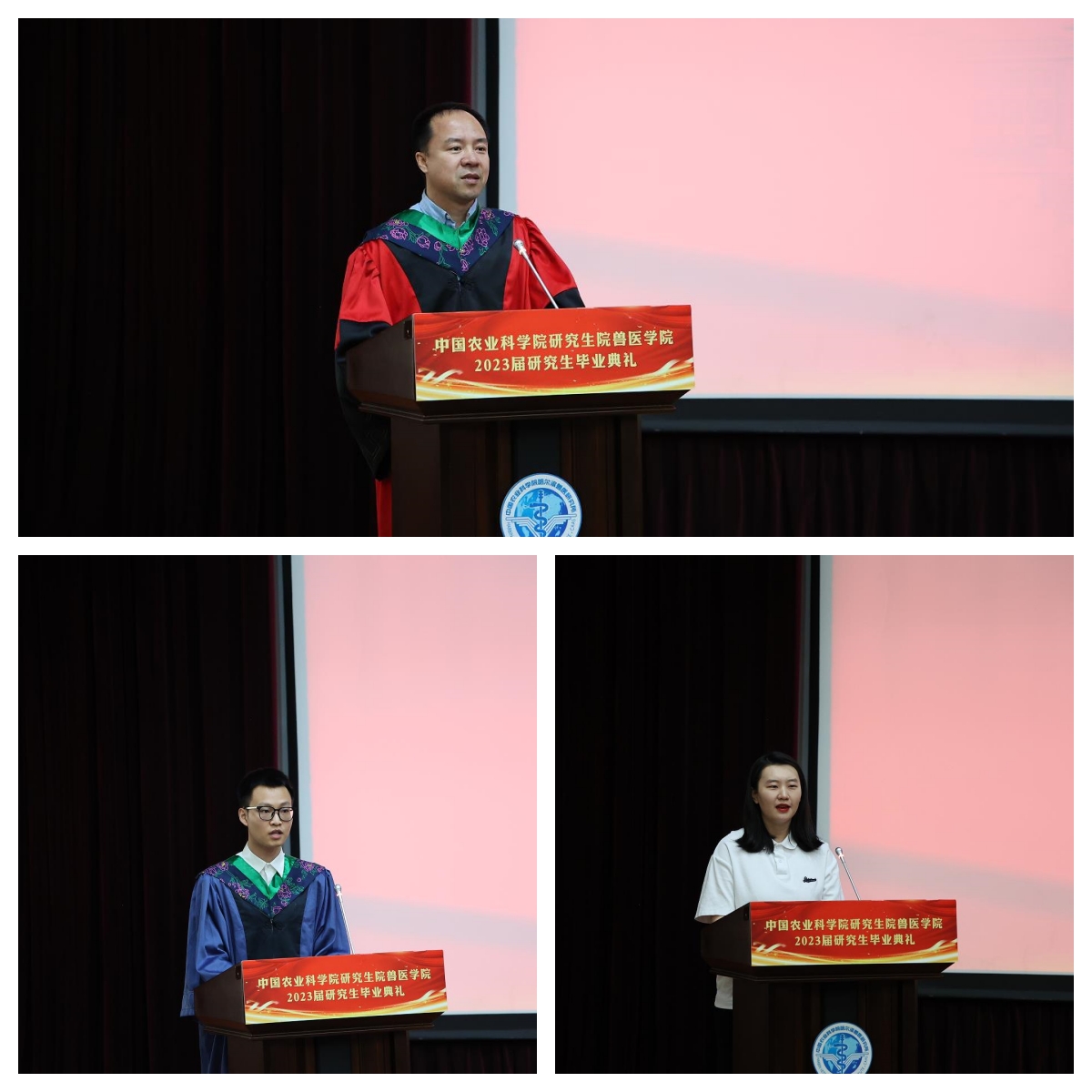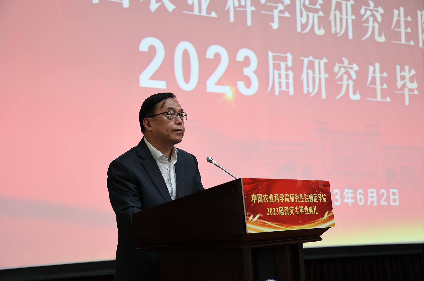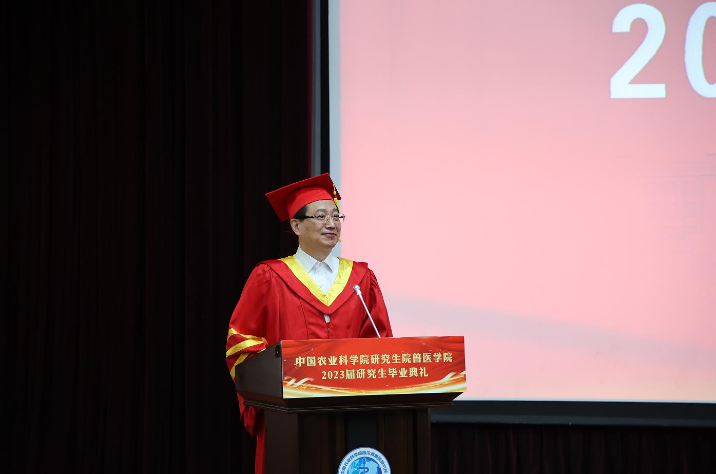 步志高所长代表兽医学院和研究所,向兽医学院2023届的全体毕业生,向哈兽研的84位毕业生表示热烈的祝贺,并对毕业生提出三点希望:一是要心怀国之大者,在解决国家重大需求中勇攀高峰;二是要坚守为民初心,在乡村振兴的伟大实践中成就卓越;三是要主动担当作为,在百年目标实现的伟大征程中创造精彩。