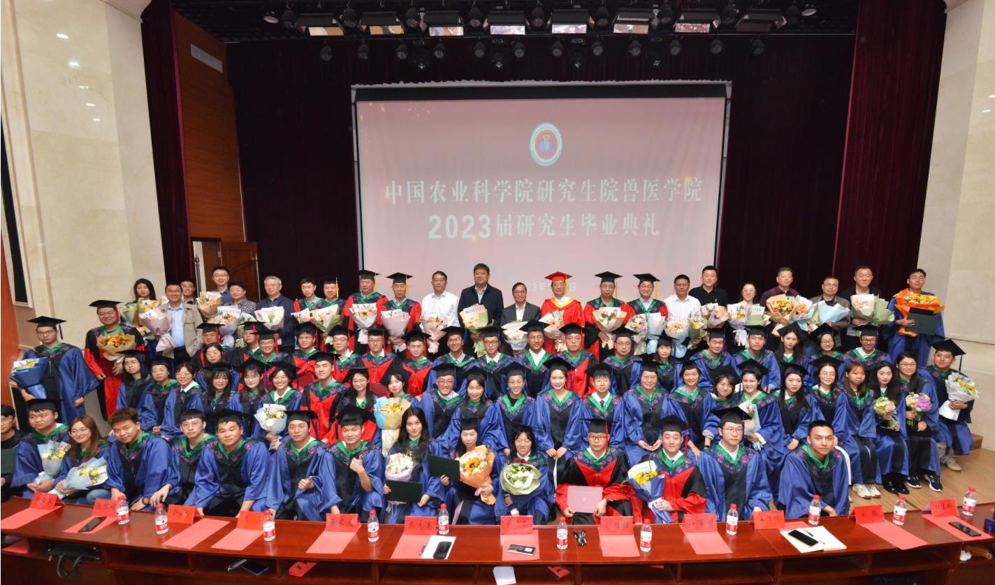 6月2日,中国农业科学院研究生院兽医学院2023届研究生毕业典礼在哈尔滨兽医研究所综合楼报告厅召开。中国农业科学院研究生院贾广东书记,研究生院兽医学院院长、哈尔滨兽医研究所所长步志高,副书记夏长友,副所长刘胜旺,副所长孙百明,纪委书记周亮,党委委员张晓鹏主任,肇庆大华农生物药品有限公司王阿明副总裁,北京金诺百泰生物技术公司刘鹤经理,黑龙江北大荒牧业集团有限公司金胜柱副总经理以及研究所职能部门负责人和创新团队首席、班主任、导师、研究生300余人参加。典礼由兽医学院常务副院长刘益民主持。