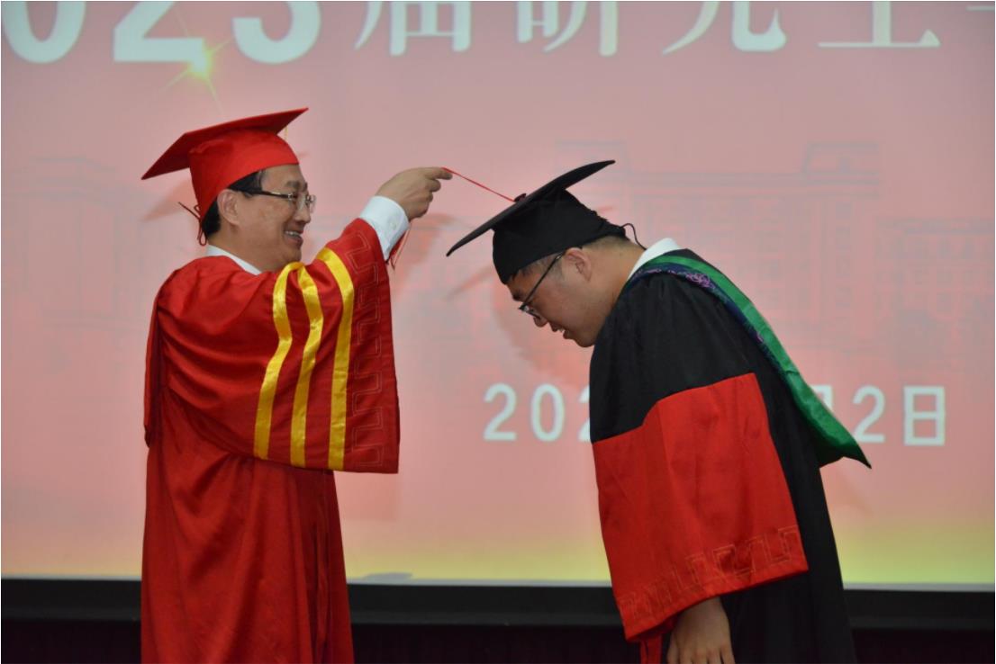 在全体与会人员共同见证下,步志高所长为哈兽研2023届84名毕业生扶正流苏,为大家的学习生活画上圆满句号。