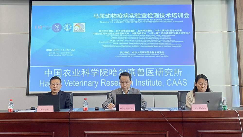 为进一步加强中哈“一带一路”联合共建交流,11月29日至30日,“中国-哈萨克斯坦马属动物疫病实验室检测技术培训会”通过线上视频会议的方式召开,在乌鲁木齐和哈尔滨设立授课会场。会议由中国农业科学院哈尔滨兽医研究所、“一带一路”动物疫病防治联合中心、乌鲁木齐海关、世界动物卫生组织和亚洲开发银行联合举办,哈萨克斯坦国家兽医实验室和地方级兽医实验室以及斯·赛福林哈萨克农业技术大学派出代表参加了视频培训。