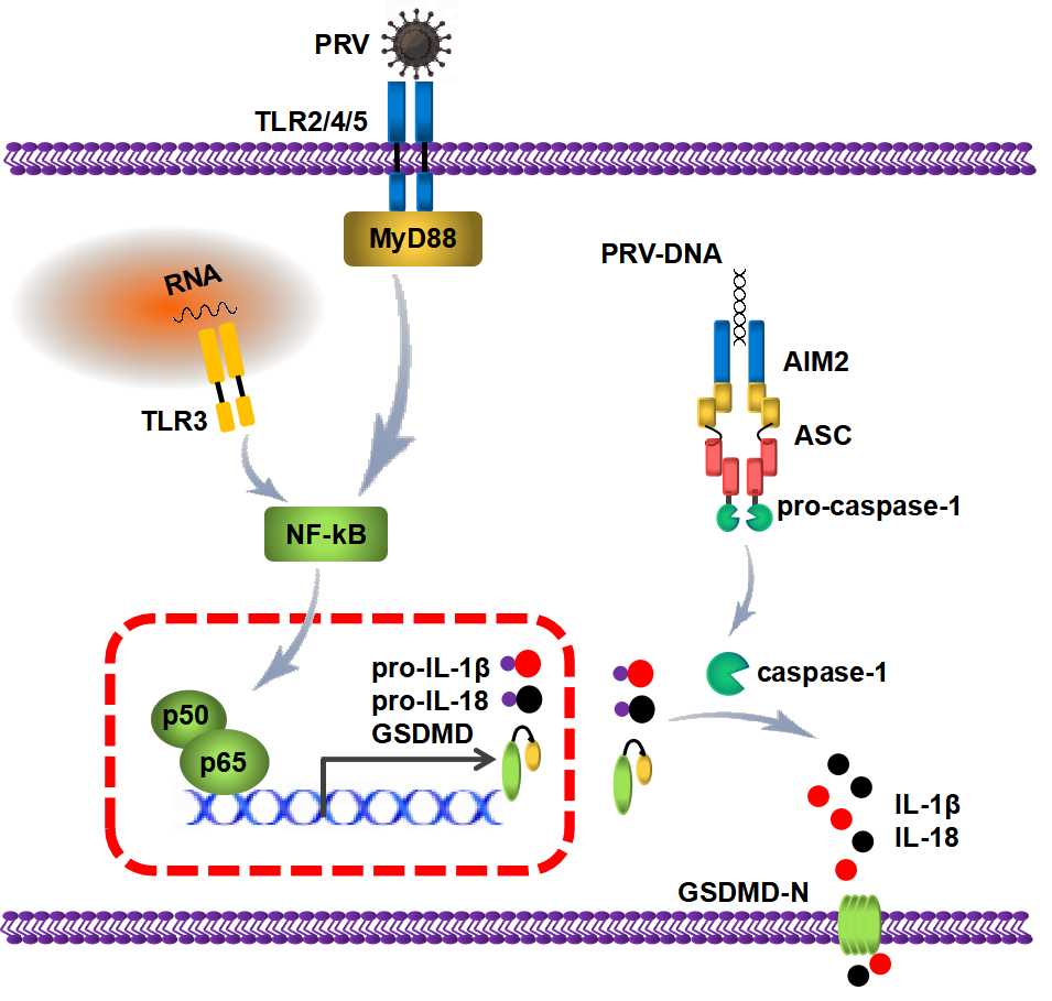 PRV可感染猪、反刍动物和啮齿动物等多种动物,并引起肺脏、脾脏和脑组织等全身性炎症反应。然而,在PRV感染过程中,机体如何启动炎症反应及如何抵抗PRV感染的分子机制并不清楚。