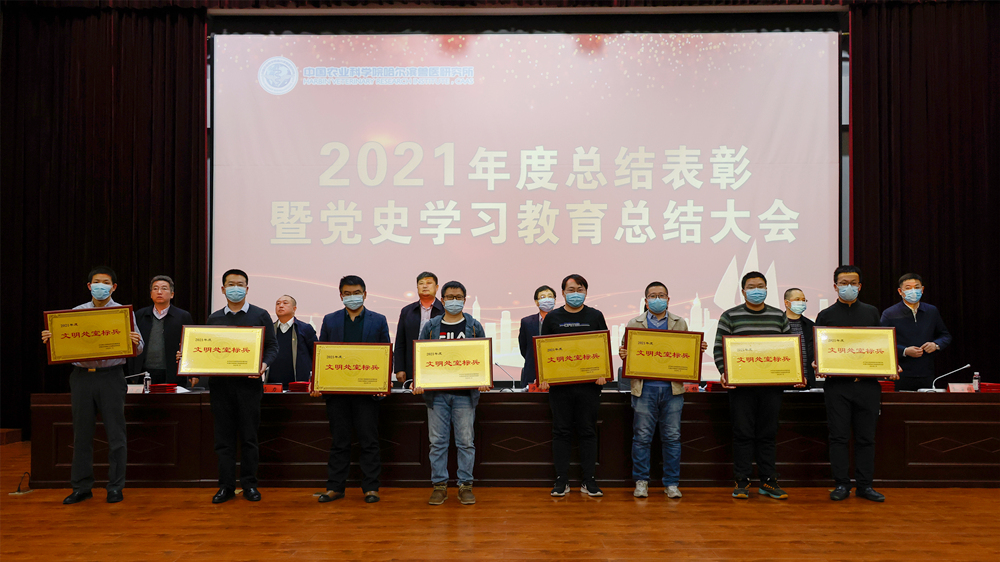 会上,通报了2021年度获得各方表彰的集体和个人名单,表彰了2021年度科技成果奖,2021年度文明处室标兵、文明班组标兵和文明职工标兵及2021年度单项奖励,所党政班子为获得奖项的集体和个人颁发了奖牌和荣誉证书。(摄影/张宇辉)