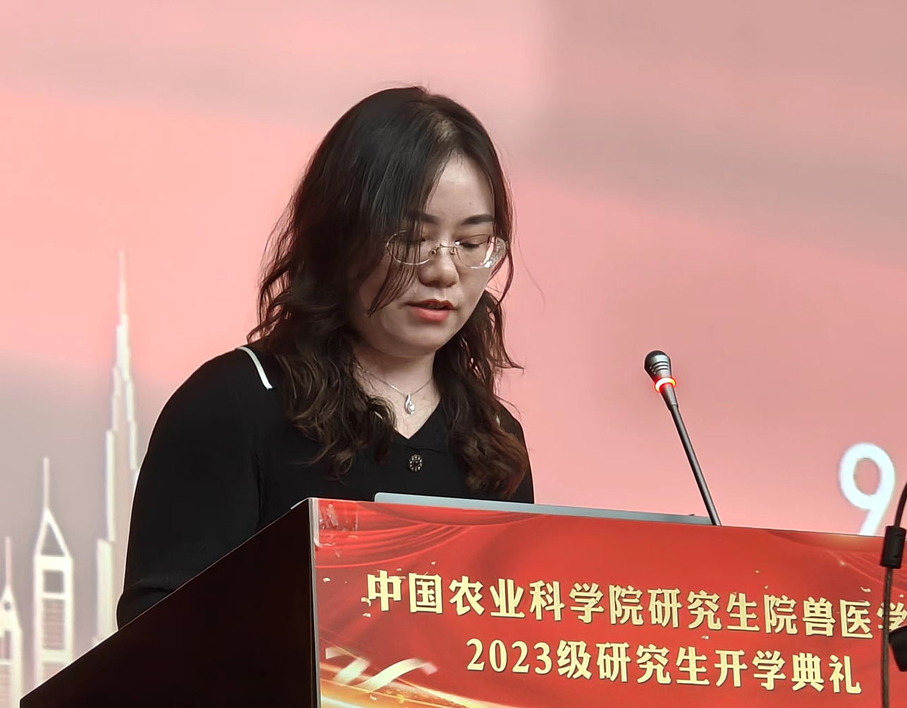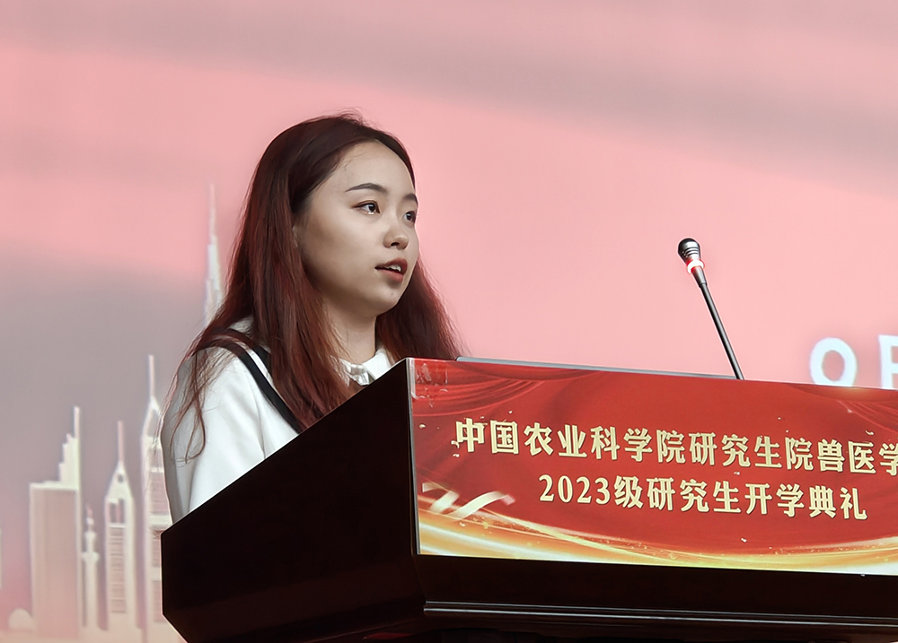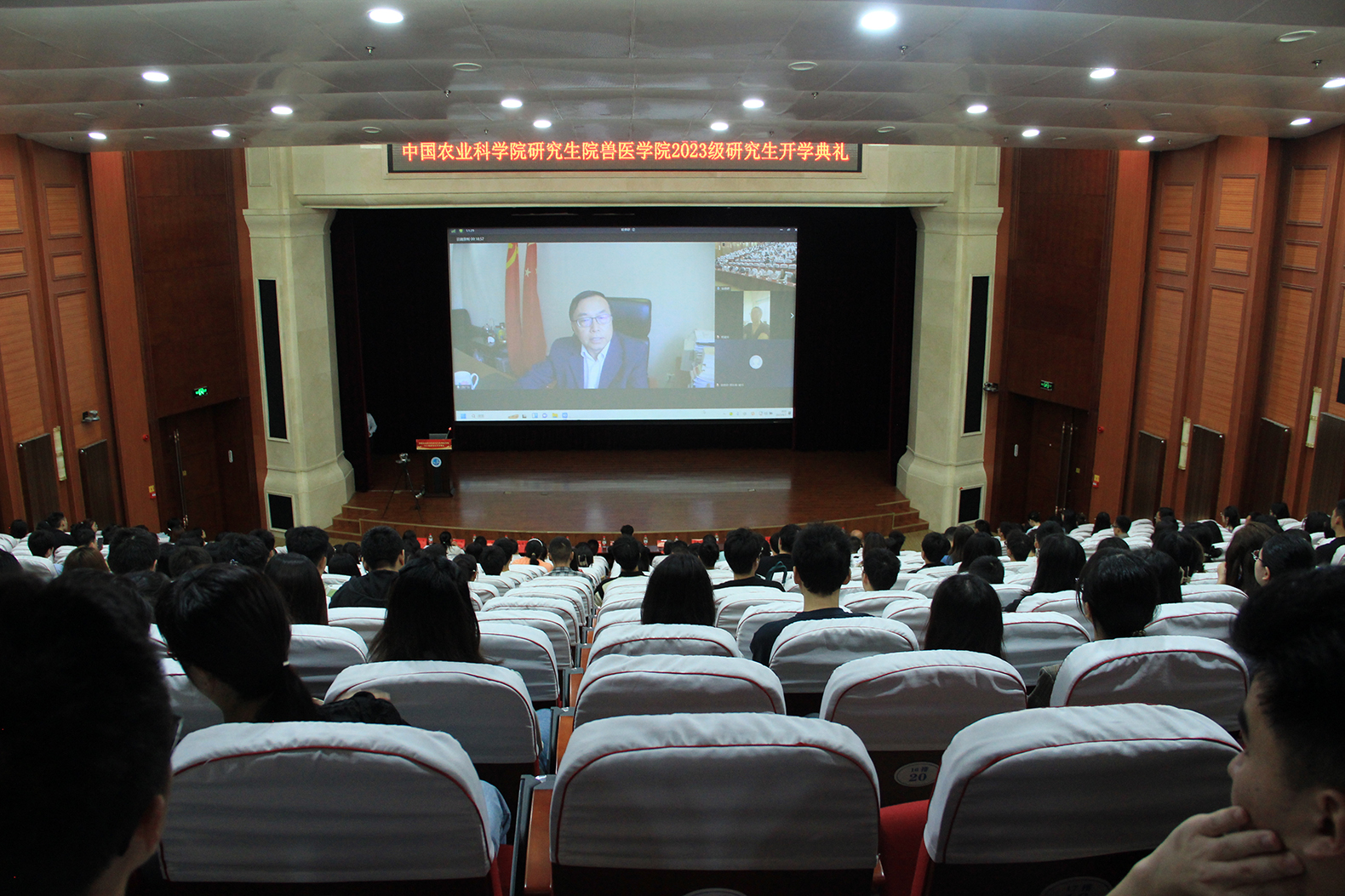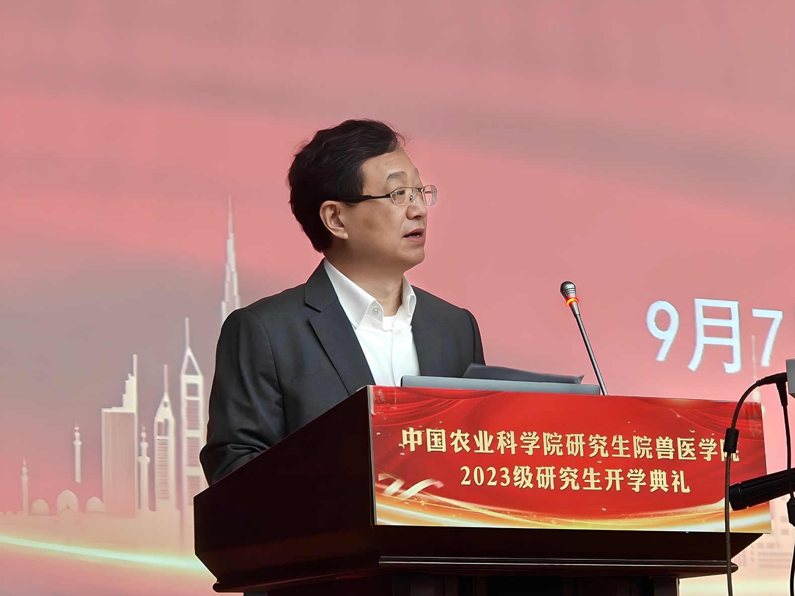 9月7日,中国农业科学院研究生院兽医学院以线上线下方式举办2023级研究生开学典礼,欢迎284名新生。研究生院党委书记贾广东线上出席,兽医学院院长、哈尔滨兽医研究所(哈兽研)所长步志高,中国兽医药品监察所副所长陈先国,兰州兽医研究所副所长朱启运,兰州畜牧与兽药研究所副所长李建喜,特产研究所副所长刘志杰,哈兽研副书记夏长友、副所长刘胜旺、副所长孙百明、纪委书记周亮和党委委员、党办主任张晓鹏,上海兽医研究所科研处处长姜一峰,都市农业研究所科技处副处长王宇,中国兽医药品监察所研究生处副处长马苏等在现场参会。开学典礼由兽医学院常务副院长刘益民主持。