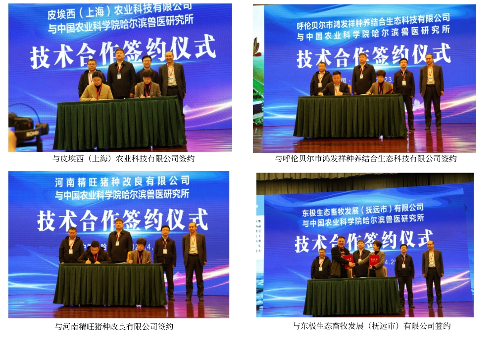 论坛开幕式由哈兽研动物卫生检测中心主任孙建宏主持,哈兽研党委副书记夏长友致欢迎辞,我省行业主管部门对本次论坛高度重视,黑龙江省动物疫病预防与控制中心主任张智杰和黑龙江省饲料工业协会会长殷学中分别代表黑龙江省农业农村厅和省饲料工业协会致辞。会上,哈兽研动物卫生检测中心分别与皮埃西(上海)农业科技有限公司、呼伦贝尔市鸿发祥种养结合生态科技有限公司、河南精旺猪种改良有限公司、东极生态畜牧发展(抚远市)有限公司等4家公司签订了技术服务合作协议。