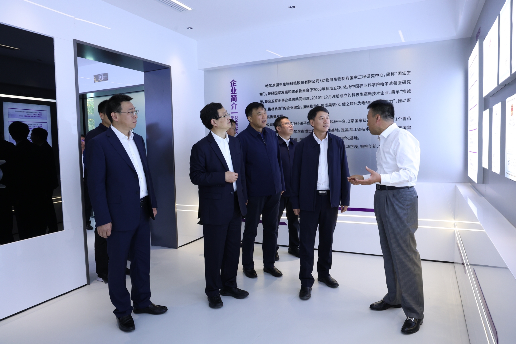 他指出,哈兽研立足龙江、扎根龙江,聚焦维护国家生物安全、服务公共卫生事业,强化基础性、原创性、引领性研究,持续推进科技成果转移转化,为龙江振兴和经济发展做出了重要贡献。他希望,哈兽研要深入贯彻落实习近平总书记在黑龙江省视察期间的重要讲话重要指示精神,继续“以科技创新引领产业全面振兴”,把科研优势、人才优势、产业优势和区位优势转化为发展新动能新优势,为龙江打造国家生物医药产业集群以及生物经济快速发展作出更大贡献。他表示,省委省政府各有关部门要继续强举措、优服务,着力搭建生物经济发展合作平台,增强推动裂变发展能力,为研究所的高质量发展及科技成果落地转化“排忧解难”,加快推进生物经济高质量发展。