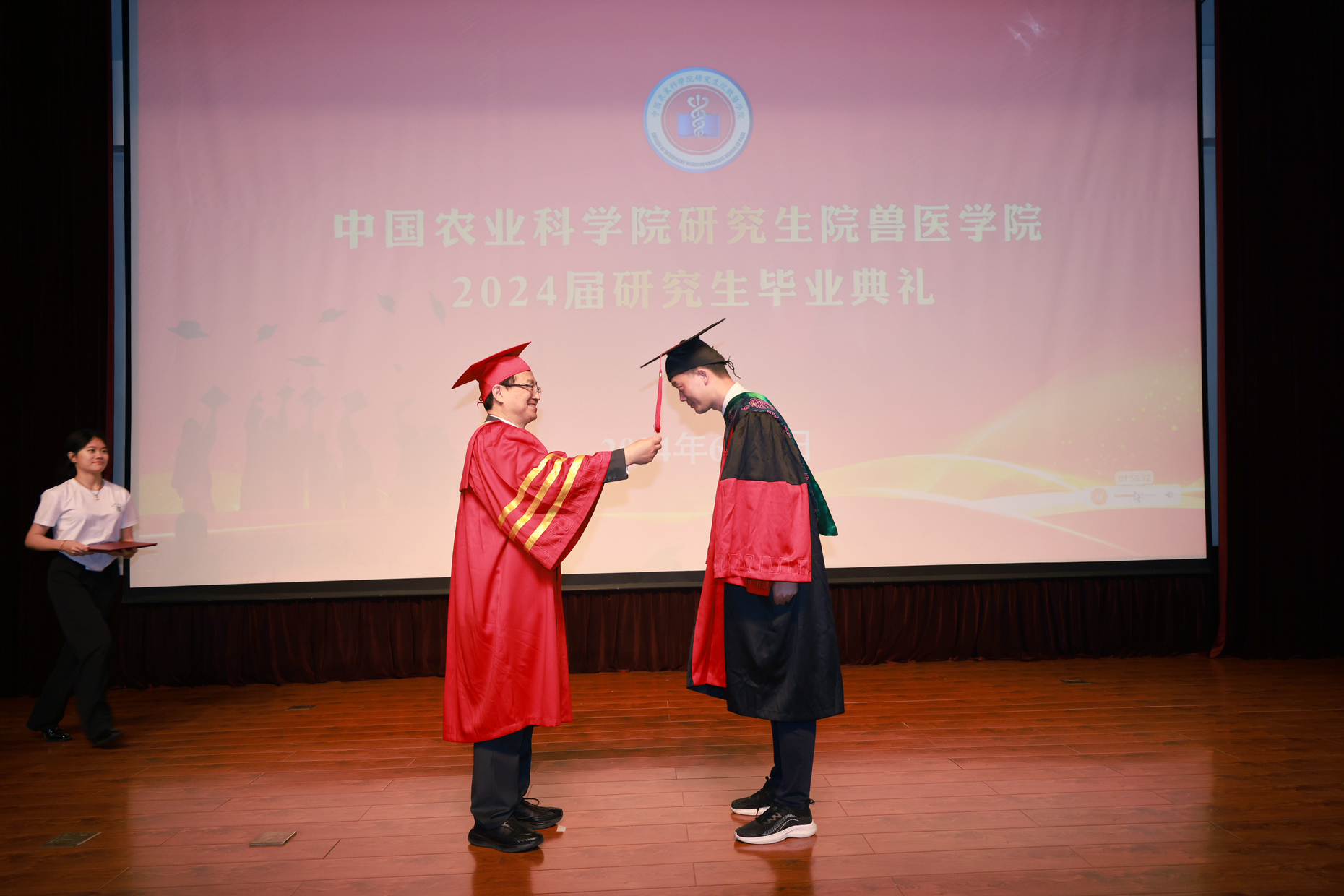在全体与会人员共同见证下,步志高为哈兽研2024届85名毕业生扶正流苏,为毕业生在哈兽研的学习生活画上圆满句号。