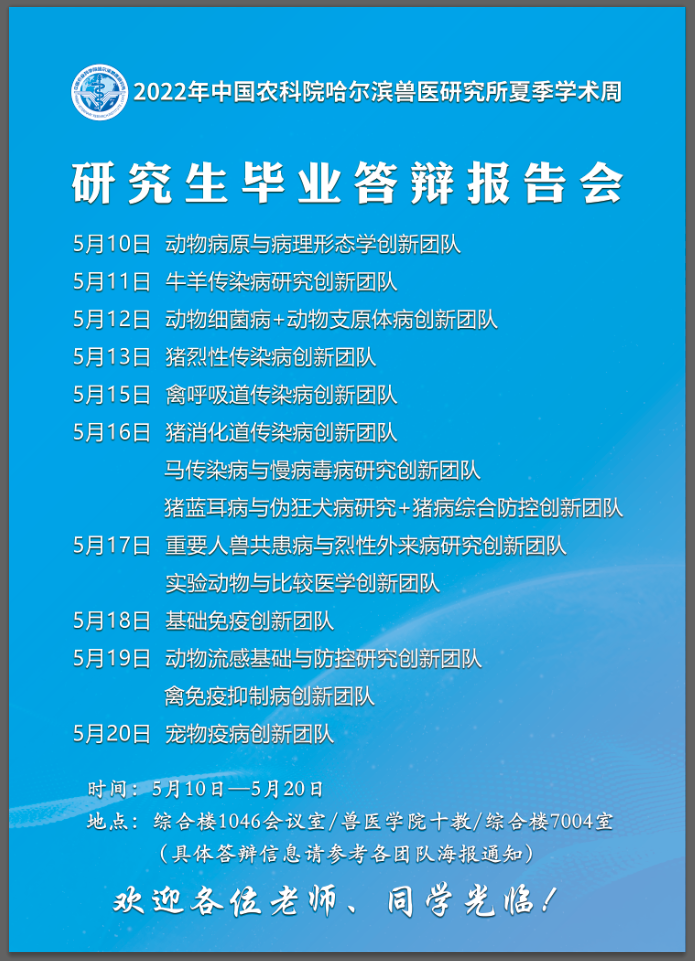 2022年中国农科院哈尔滨兽医研究所 夏季学术周研究生毕业答辩报告会
