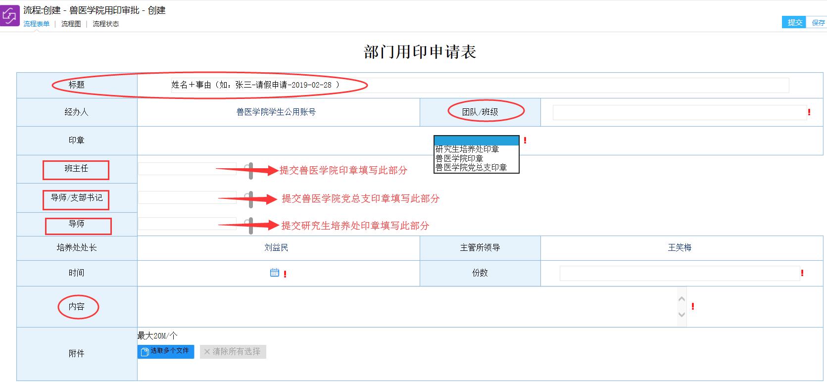(2)兽医学院印章:填写团队/班级,选择所在班级班主任;
