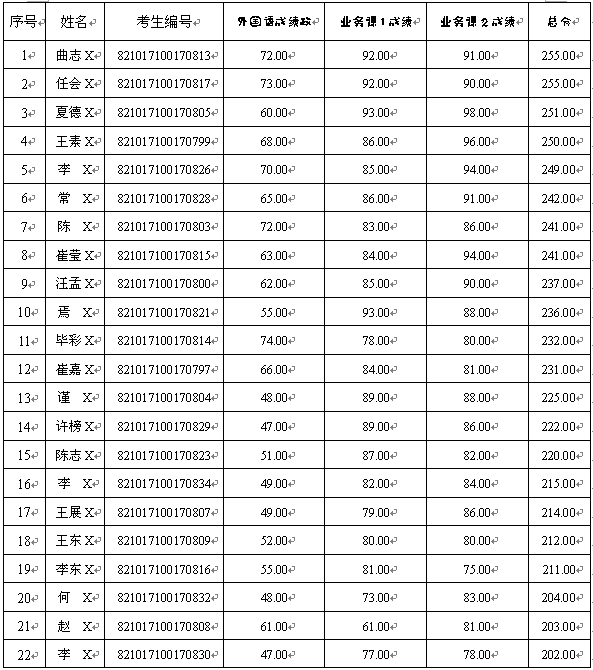 2、初试与复试成绩所占录取比例为5:5,复试结束后,按初试(占50%)和复试(占50%)加权总成绩进行名次排序,得出录取总成绩,从高到低依次录取。