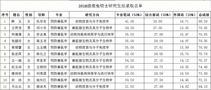 哈尔滨兽医研究所2018级推免硕士研究生复试通知