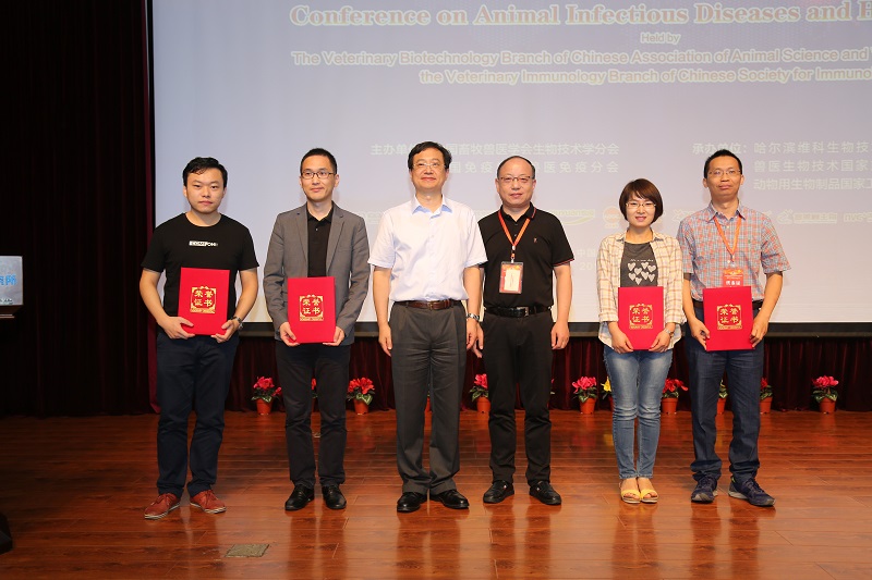 闭幕式上,哈尔滨兽医研究所所长、兽医生物技术分会理事长步志高和鼎持生物技术有限公司副总经理李百森为曹罡、黄耀伟、郭慧琛、韩管助、田进5名青年学者颁发了“鼎持杯”优秀青年报告奖证书。