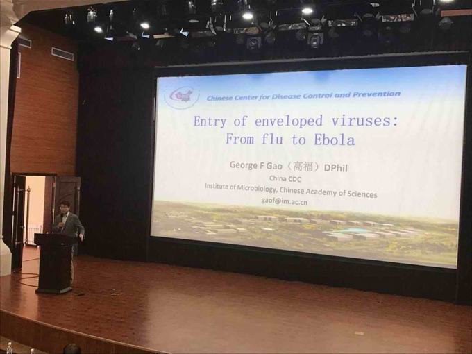 前不久,我所第二期“凌风讲堂”开讲,中国疾病预防控制中心副主任高福院士应邀作了题为“囊膜病毒的侵入,从流感到埃博拉病毒”精彩报告。讲堂由所长步志高主持,副所长王笑梅和全所科研人员及研究生200余人参加了本次讲堂。