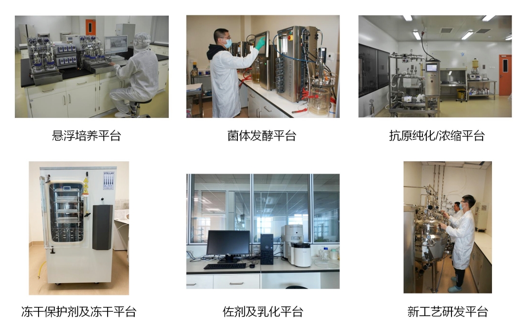 本中心具备动物用生物制品从实验室规模到中试规模全链条的生产工艺研究条件,设有悬浮培养工艺平台、菌体发酵工艺平台、抗原纯化/浓缩工艺平台、冻干保护剂及冻干工艺平台、佐剂及乳化工艺平台,以及其他新工艺研发平台。本中心仪器设备齐全,拥有国际一流工艺设备,迷你生物反应器DASbox(德国Eppendorf公司)、平行生物反应器系统DASGIP(德国Eppendorf公司)、30 L 生物反应器(德国Sartorius公司)、120 L生物反应器(德国Sartorius公司)、生物过滤系统H120(美国GE 公司)、高效蛋白纯化工作站AKTA pilot(美国GE公司)、低温冷冻干燥显微镜(英国林肯公司)、粒度分布测量仪(日本岛津公司)等100万以上仪器30余台/套。