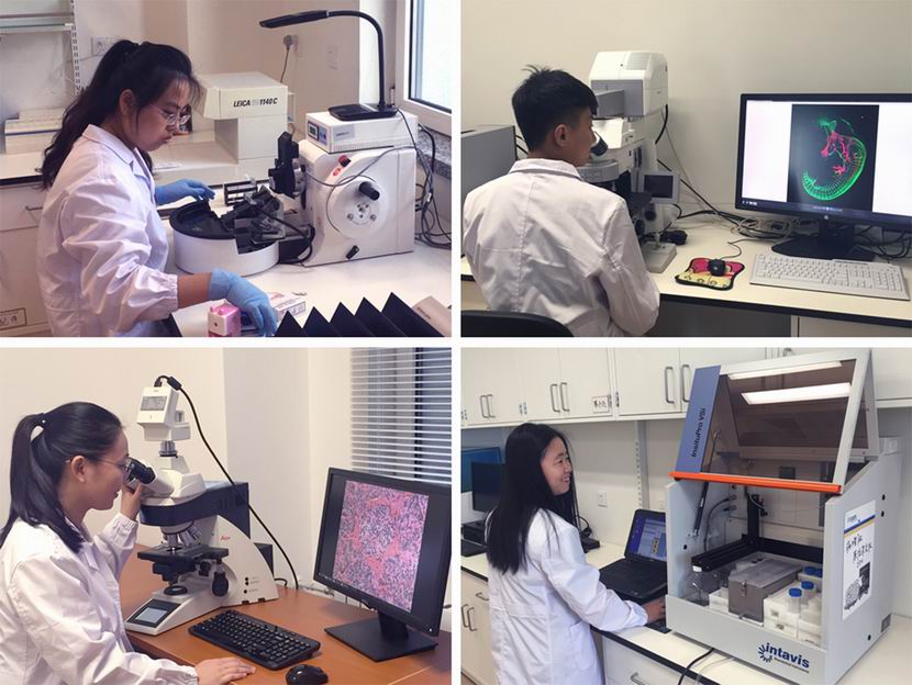 病理学实验室共有取得博士学位的研究人员6人,其中研究员1人,副研究员2人,助理研究员2人,博士后1人。病理技师2人。主要开展高质量常规病理组织切片,提供不同实验组的差异病变数据,分析病变差异的产生原因,为研究特定疾病的发生、发展及临床表现提供科学的理论依据。在开展的免疫组织化学方面,由于该技术具有定位准确、形态与功能相结合的特点,对疾病,尤其是对肿瘤的诊断、鉴别诊断及发病机制的研究提供了强有力的手段。实验室配备了美国Thermo的全套病理设备(全自动免疫组化仪、全自动脱水机、全自动染色机、全自动包埋机和全自动切片机)以及德国Intavis全自动原位杂交仪,德国Zeiss共聚焦成像系统和高通量切片扫描系统。同时承担多项国家及省、部级以上科研项目。共发表中、英文文章69篇,发表著作7部。