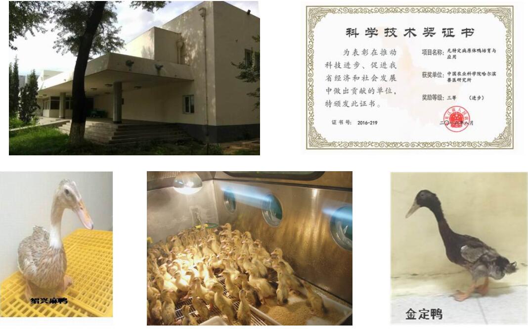 SPF鸭中心(生产许可证:SCXK(黑)2017-006):SPF鸭培育方面,净化了禽呼肠孤、禽流感H5、H7、H9亚型、新城疫、减蛋综合症、鸭肝炎、鸭肠炎、鸭圆环、鸭细小病毒病,共10种鸭病病原,率先成功培育了我国SPF绍兴麻鸭、金定鸭鸭群,目前有HBK-B、HBK-Q、HB/Bn三个品种6个品系。